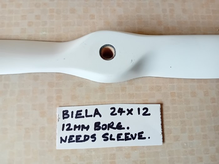 SUPER QUALITY UNUSED AS NEW PROP WHICH HAS JUST HAD HUB BORE DRILLED FOR A 12 MM DIA ENGINE CRANK.