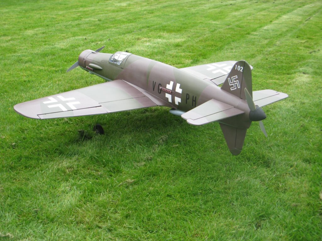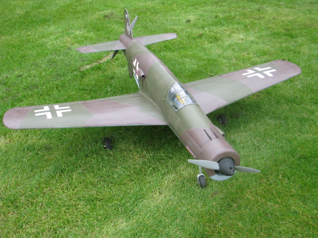 The airframe has two 4Max 1100kv motors on contra-rotating 12×6 propellers giving approximately 1200 watts. It has two Overlander 80amp ESCs and a 20 amp SBEC to power the receiver and the servos. It is presently set up as 10 channels with a Lemon receiver but could be reduced to 8 channels if required. Power is from two 3s 4400mah Lipos. The model is glassed using PolyC and sprayed with the correct German camouflage scheme, with additional 3D printed detailing. I will supply the original Al Masters plans so you can ensure you have the COG in the right place.