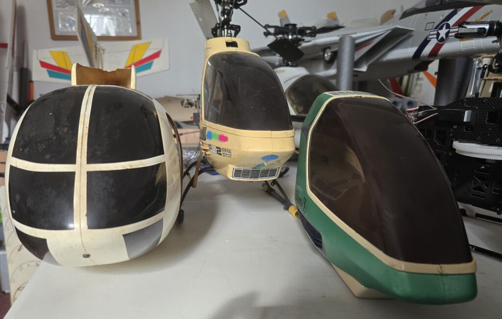 Irvine 36 engine, Top Start, JR NES471 servo on tail rotor, JR NES 591 servo x4, Piezo gyro, SM Services low fuel monitor, SAB blades,