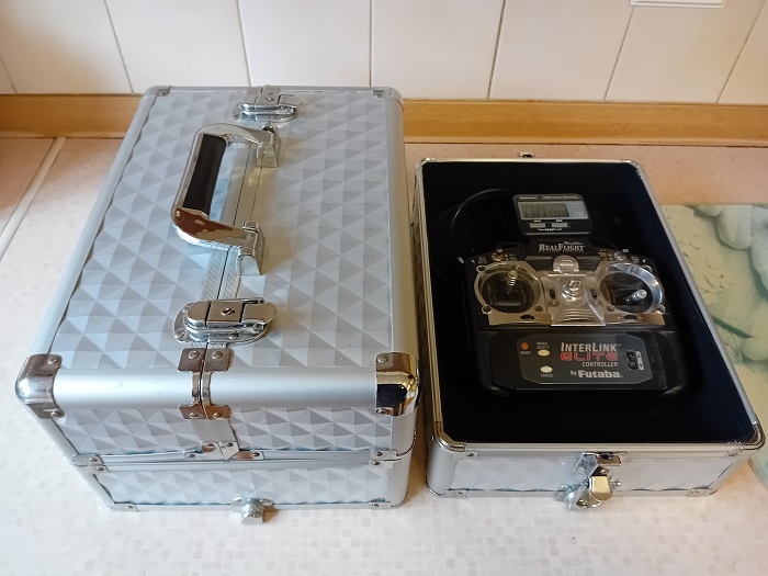 STURDY CONSTRUCTION TO PROTECT FRAGILE RC CONTENTS AND REMOVEABLE BASE SECTION BIG ENOUGH TO HOUSE TX. WOULD JUST NEED A PIECE OF THICK FOAM CUT TO SHAPE TO STOP TX MOVING AROUND IN TRANSIT…TX SHOWN JUST FOR ILLUSTRATION PURPOSES.