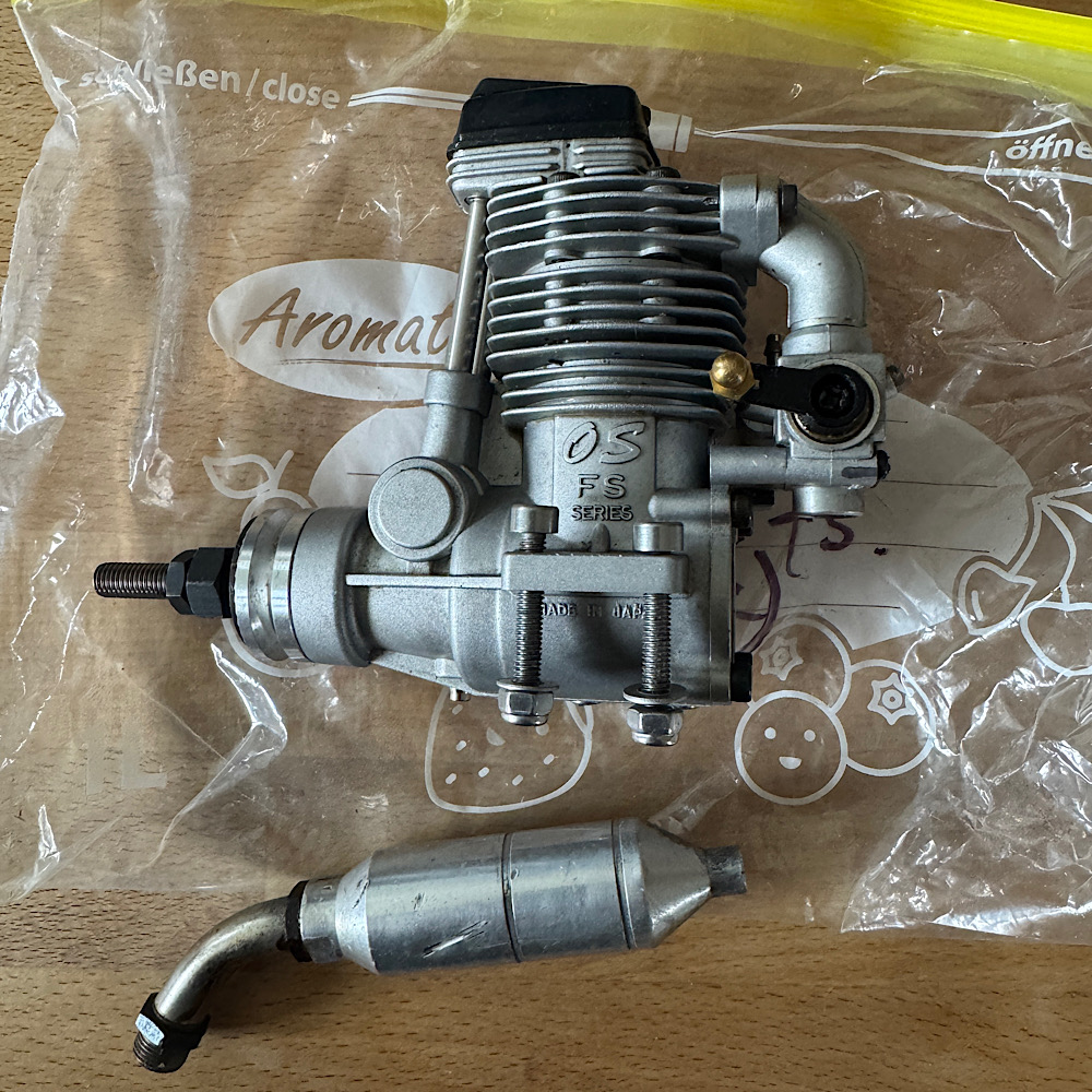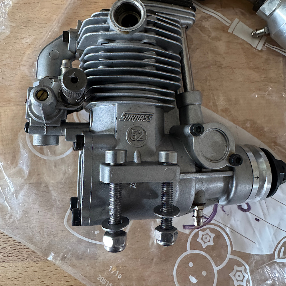 Up for sale is this OS 52 FS. It was used in my Lancaster and has only flown three times. The engine is as new although there is a small gouge on the exhaust which was there when I bought the engine. After use the backplate was removed, the engine washed out with kerosene and oiled up with ACF 50. The bearings are perfect. A very low time, sweet running engine. Located in the Chew Valley, BS39 area. £100.