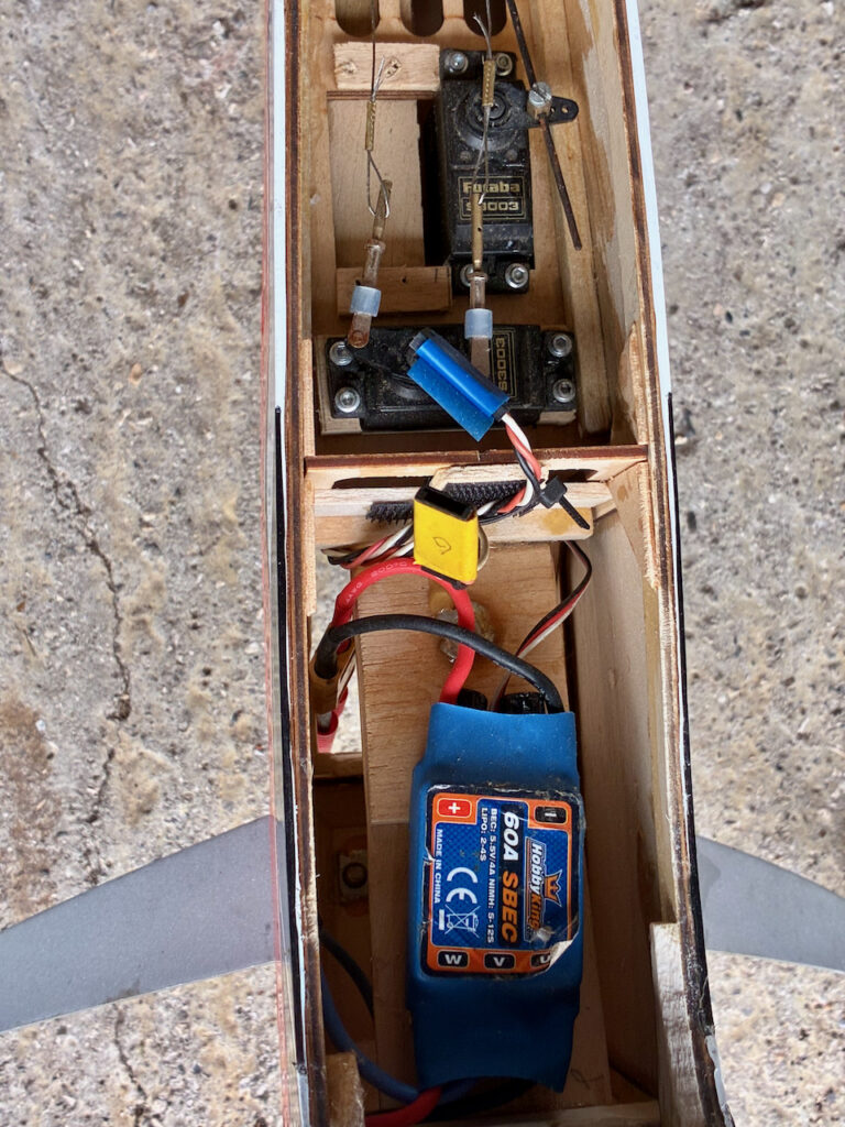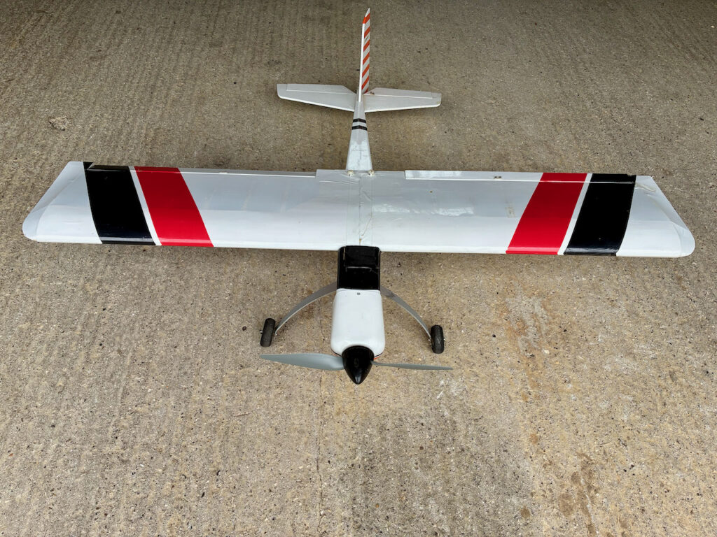 Flies well. Fair condition with minor repairs – has been well-used. Stripes on wing are red – orange on fuselage.