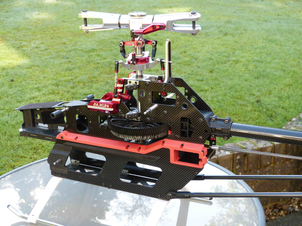 Airframe only as per photos, with standard pinion gear, battery tray and quick release canopy catches. No main or tail blades.