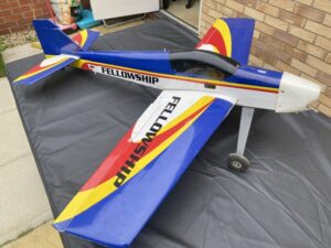 55” TopGun Fellowship model. For .60 2-stroke/.90 4-stroke. Good condition but needs some tidying up. Comes with a mix of standard servos and ridiculous carbon gear for off-roading. Needs an engine, receiver and 2 elevator servos.