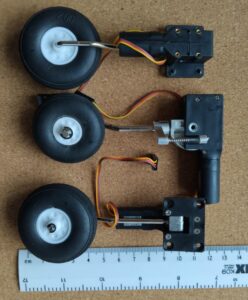 Set of electric retracts 2mains 1 steerable nose leg 40 + 45mm wheel diam. as new one take off no landings.