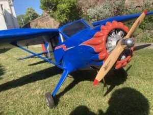 Top Flight Stinson Reliant. 2 piece 100”wingspan, covered in Glosstex. Comes complete with Moki 30cc petrol engine, futaba servos, 2 6v rx batteries working through a SM services battery backer system, 1 6v ignition battery. A Spektrum 6ch rx can...