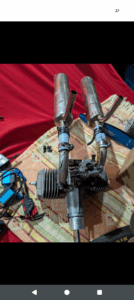 As in title Perfect running condition Has cans, headers, spinner and prop. Cans have been adapted to fit over a uc plate but runs spot on. £350