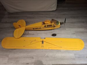 Piper Cub for sale Wingspan: 1,700 mm Fuselage: 1,100 mm x3 Futaba S3003 x1 Hitec HS-325HB OS46 Max AX (no exhausts) Comes with Cowling Large tundra style tyres No Reciever or Battery Excellent flyer and looks great in the air....