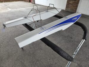 Set of floats for an Eflite Carbon Z cub. Used once only so very clean and contains the servo for steering etc. The plastic strips on the front part of the bottom of the floats are missing. Can't see this...
